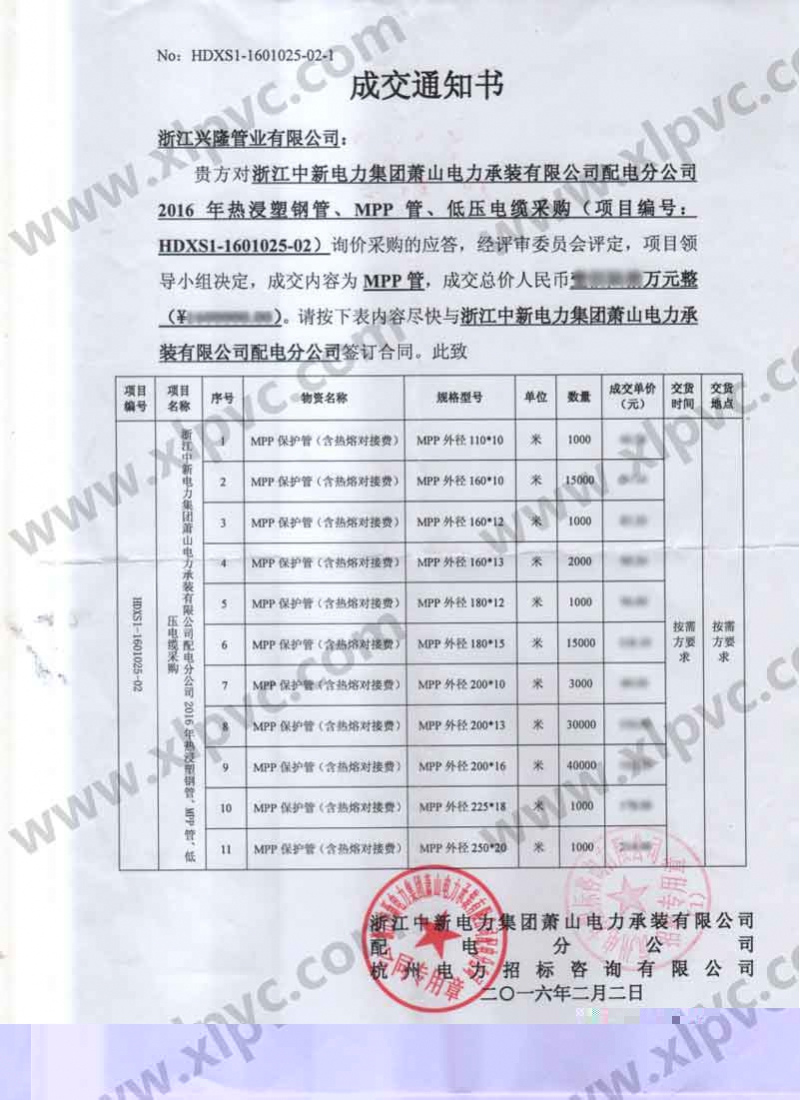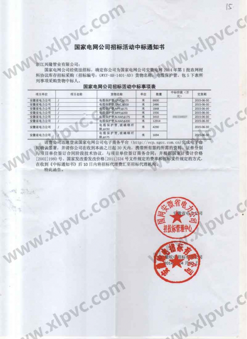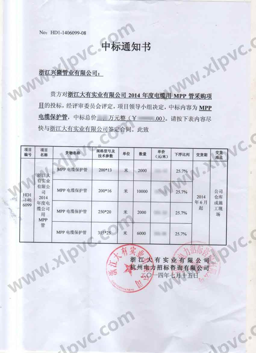 中標通知書